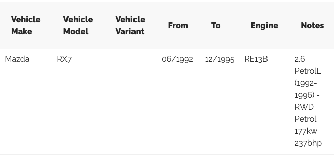 - To suit Mazda RX-7 FD