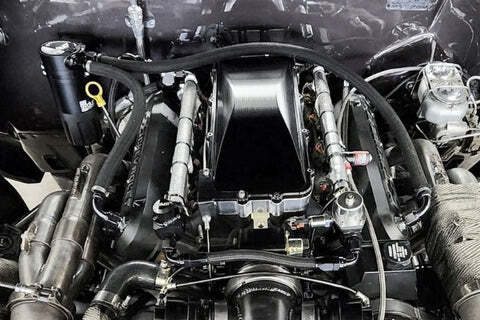 Vent to Engine (VTE): This system permits the purified air to recirculate back into the intake system. Simply removing the top 3 screws, the VTA plate can be swapped for the VTE plate and gasket. Very quickly, 2 additional 7/8"-14 (10AN ORB) ports are added to the catch can converting it to a dual inlet/dual outlet catch can.