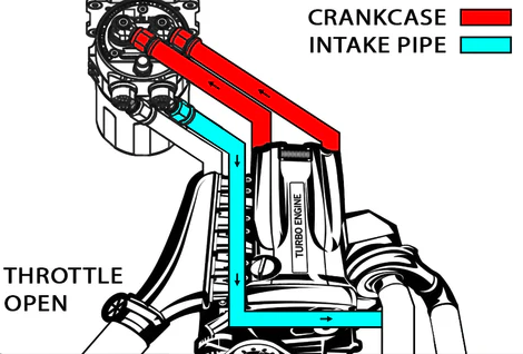 - When the throttle is open, the PCV valve closes and there is vacuum in the intake pipe.