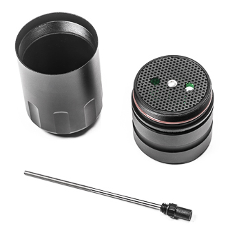 These catch cans are used in Radium Engineering application-specific catch can kits. They are machined from solid 6061 aluminum. The 2 halves and all ports are O-ring sealed, thus safe for pressurized (forced induction) applications. The main inlet and outlet ports are 10AN ORB (7/8"-14) female threads. The integrated M8x1.25mm threaded dipstick (shown below) unscrews for a quick way to check oil level.